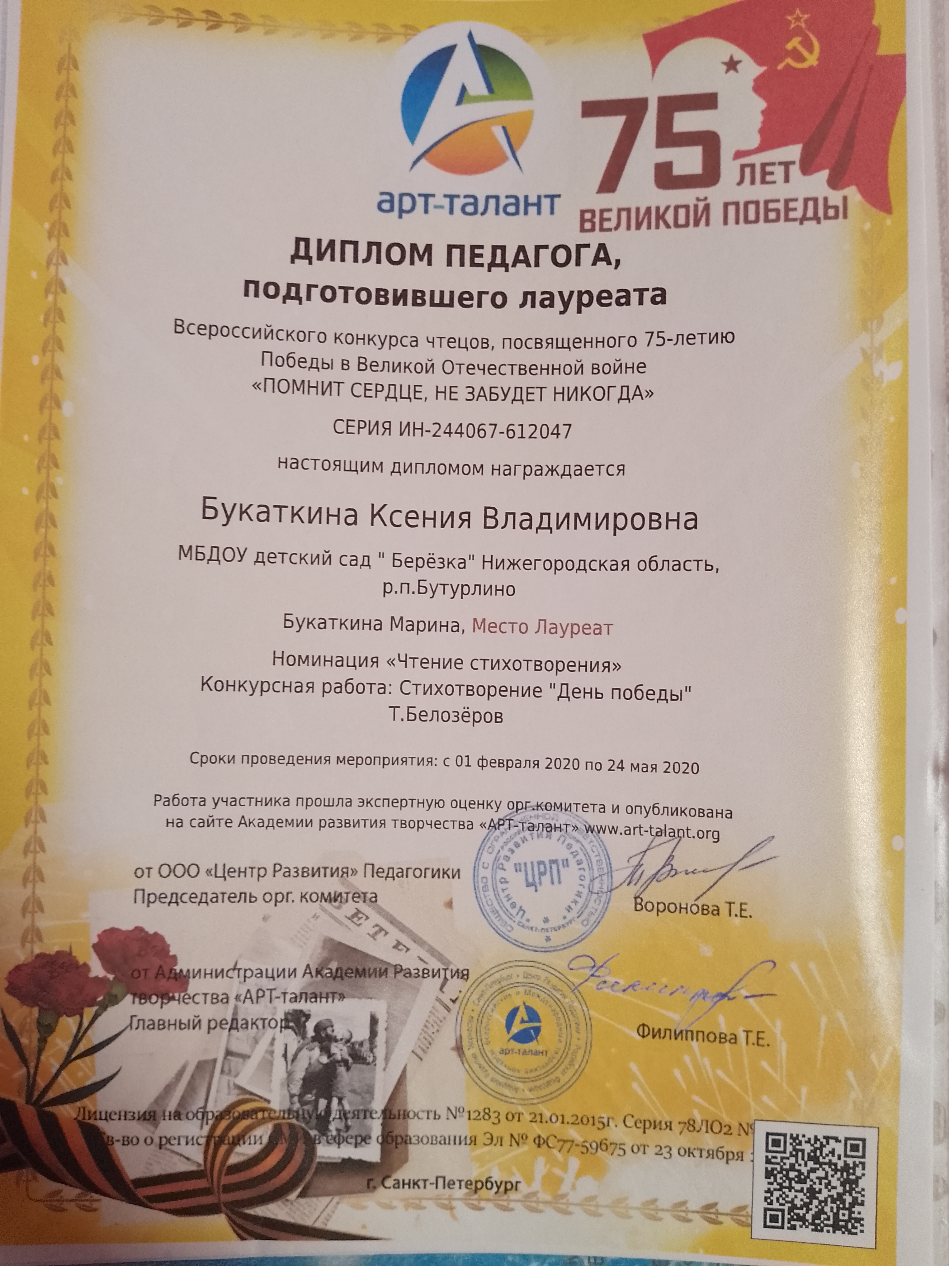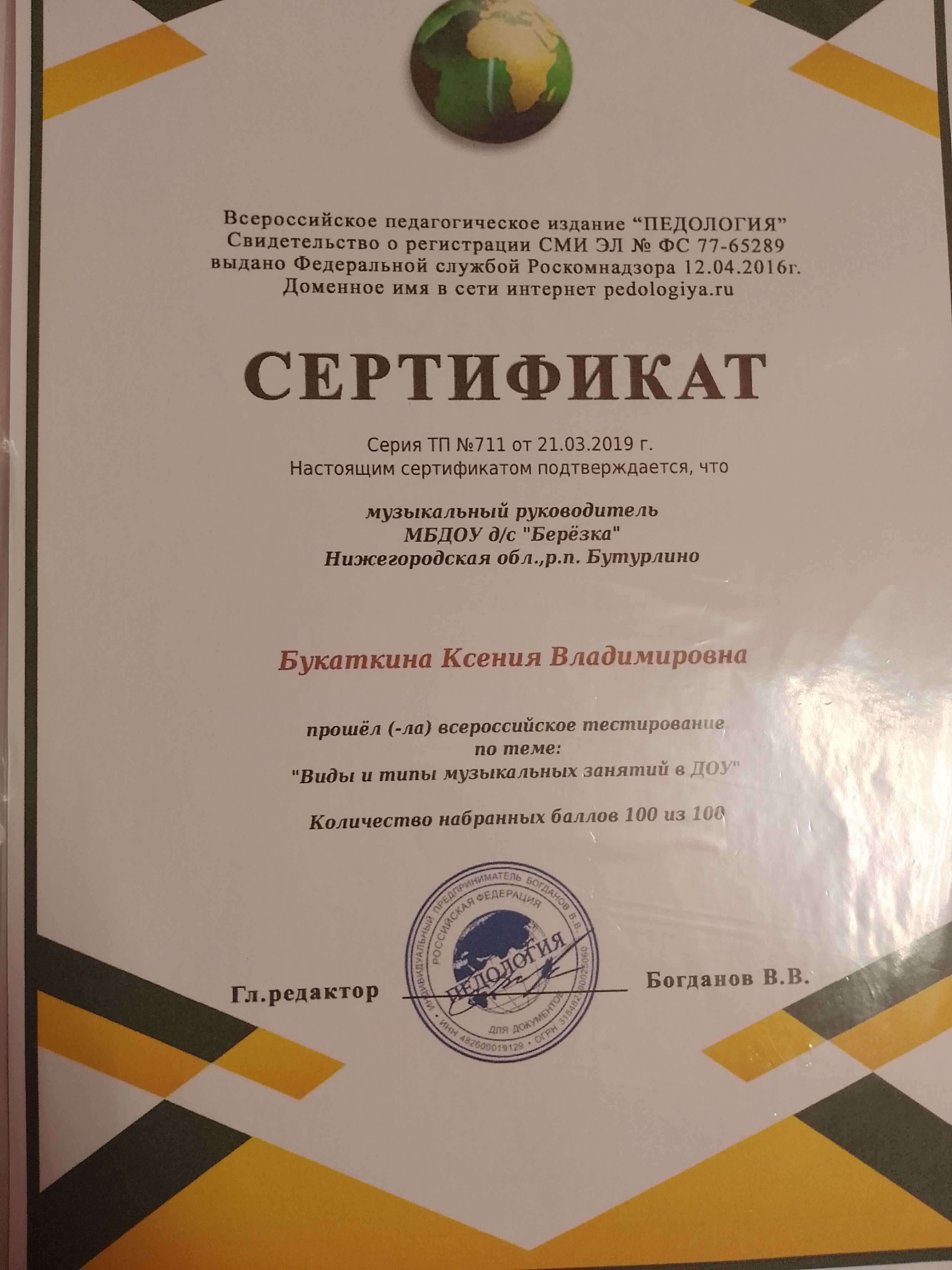 Мои сертификаты, свидетельства, дипломы